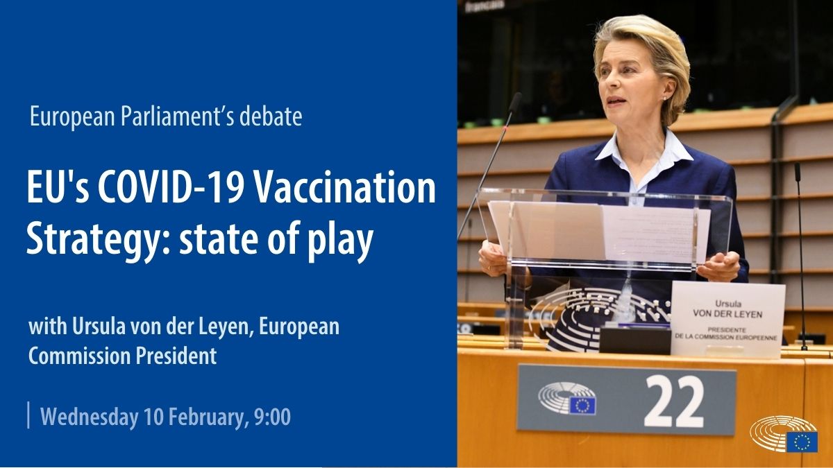 Η Πρόεδρος της Ευρωπαϊκής Επιτροπής κ. Ούρσουλα φον ντερ Λάιεν, εκφώνησε ομιλία στην Ολομέλεια του Ευρωπαϊκού Κοινοβουλίου, στο πλαίσιο συζήτησης για την πορεία της Στρατηγικής Εμβολιασμού της ΕΕ κατά της COVID-19.