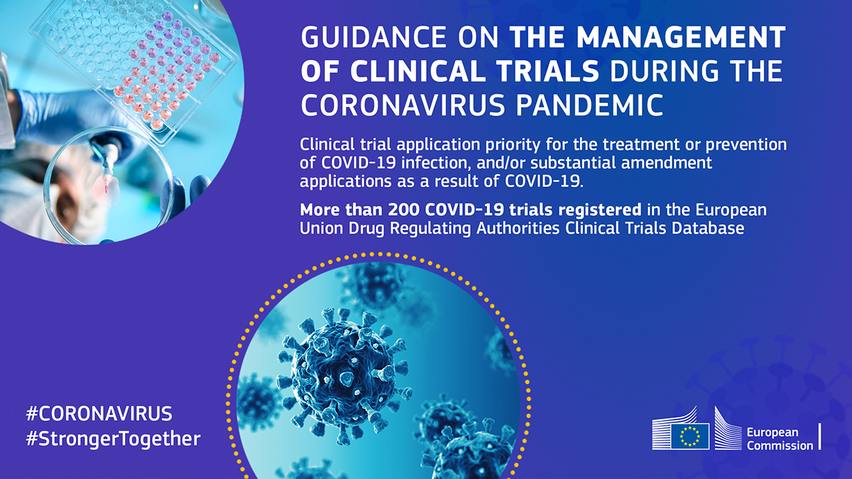 Η Επιτροπή δημοσίευσε κατευθυντήριο έγγραφο ώστε να διασφαλίσει ότι η διεξαγωγή κλινικών δοκιμών μπορεί να συνεχιστεί στην ΕΕ κατά τη διάρκεια της πανδημίας COVID-19. Στόχος είναι να μετριαστεί η διαταραχή των κλινικών ερευνών στην Ευρώπη και, κατά συνέπεια, οι αρνητικές επιπτώσεις της πανδημίας, χωρίς να διακυβεύονται η ποιότητα και η ασφάλεια. Οι συστάσεις αυτές αποτελούν σημαντικό μέρος της συνολικής στρατηγικής για την ανάπτυξη θεραπευτικών αγωγών και εμβολίου με στόχο την προστασία των πολιτών από τον κορονοϊό.
