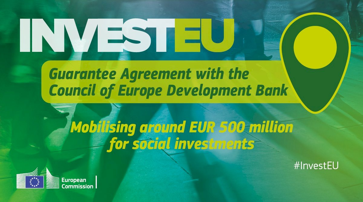 Η Ευρωπαϊκή Επιτροπή και η Τράπεζα Ανάπτυξης του Συμβουλίου της Ευρώπης (CEB) υπέγραψαν συμφωνία εγγυήσεων ύψους 159 εκατ. ευρώ. Με τη συμφωνία αυτή, η CEB καθίσταται εταίρος υλοποίησης του InvestEU και θα κινητοποιήσει περίπου 500 εκατ. ευρώ σε πρόσθετα δάνεια για κοινωνικά έργα. Πρόκειται για ένα σημαντικό ορόσημο, καθώς για πρώτη φορά το InvestEU στηρίζει τις επενδύσεις μιας πολυμερούς τράπεζας ανάπτυξης με αποκλειστικά κοινωνική εντολή.