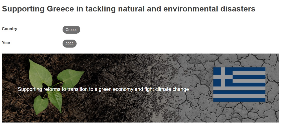 Ένα νέο έργο που χρηματοδοτείται από το Μέσο Τεχνικής Υποστήριξης (TSI) της Επιτροπής θα βοηθήσει την Ελλάδα να ενισχύσει την ανθεκτικότητά της για την αντιμετώπιση των φυσικών και περιβαλλοντικών καταστροφών. Η Ελλάδα πλήττεται από όλο και συχνότερα ακραία καιρικά φαινόμενα που προκαλούν αυξανόμενο αριθμό πυρκαγιών και πλημμυρών, όπως ήταν οι πρωτοφανείς πυρκαγιές του Αυγούστου του 2021.