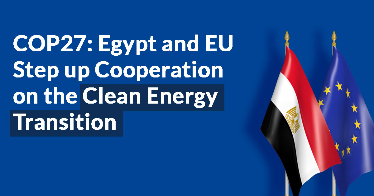 Με τις σημερινές υπογραφές στην COP27 η εν εξελίξει συνεργασία ΕΕ-Αιγύπτου για την πράσινη μετάβαση σημειώνει συγκεκριμένα βήματα προόδου, σύμφωνα με τη συμφωνία σύνδεσης ΕΕ-Αιγύπτου, την πρωτοβουλία Global Gateway της ΕΕ, το θεματολόγιο της ΕΕ για τη Μεσόγειο και το οικονομικό και επενδυτικό της σχέδιο, καθώς και τις προτεραιότητες της εταιρικής σχέσης ΕΕ-Αιγύπτου. Είχαν προηγηθεί η κοινή δήλωση για το κλίμα, την ενέργεια και την πράσινη μετάβαση, την οποία εξέδωσαν η Πρόεδρος της Ευρωπαϊκής Επιτροπής κ, Ούρσουλα φον ντερ Λάιεν και ο