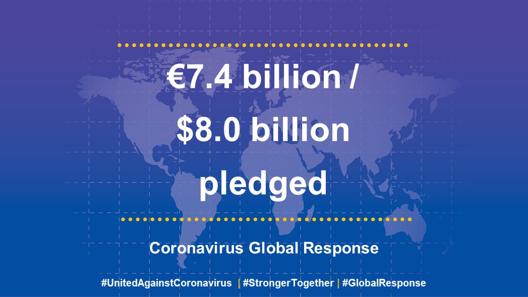 Ο κόσμος επέδειξε εξαιρετική ενότητα για το κοινό καλό. Η συνεισφορά της Ευρώπης ήταν πολύ σημαντική. Σήμερα συγκεντρώσαμε 7,4 δισ. ευρώ, ποσό που, χάρη στην ευνοϊκή για εμάς συναλλαγματική ισοτιμία, αντιστοιχεί σε πάνω από 8 δισ. δολάρια ΗΠΑ. Από αυτά τα 8 δισ. δολάρια, η «Ομάδα Ευρώπη» —δηλαδή η Ευρωπαϊκή Ένωση και τα κράτη μέλη της— συνεισέφεραν πάνω από 4 δισ. ευρώ.