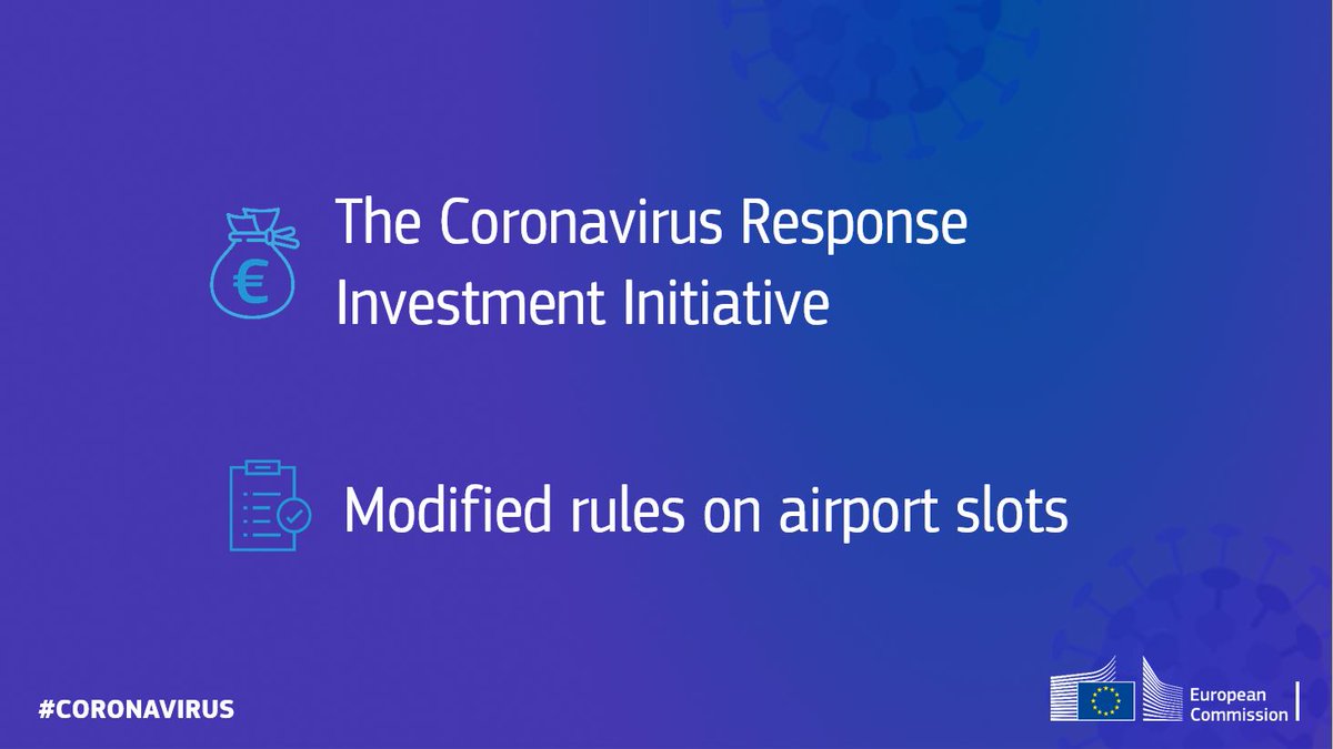 Στόχος είναι η αποδέσμευση και η ταχεία διάθεση χρημάτων για την κάλυψη επιτακτικών αναγκών, π.χ. για νοσοκομειακές κλίνες και τη στήριξη των μικρομεσαίων επιχειρήσεων και των εργαζομένων. Επιπλέον, η Επιτροπή πρότεινε την τροποποίηση των κανόνων της ΕΕ για τις χρονοθυρίδες.