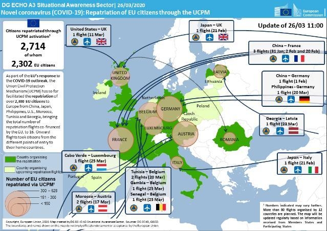 Η Ευρωπαϊκή Επιτροπή πρότεινε να διατεθούν 75 εκατ. ευρώ από τον προϋπολογισμό της ΕΕ για τη συμβολή στις προσπάθειες των κρατών μελών να επαναπατρίσουν υπηκόους της ΕΕ και την αύξηση του προϋπολογισμού του αποθέματος ιατρικού εξοπλισμού του rescEU.