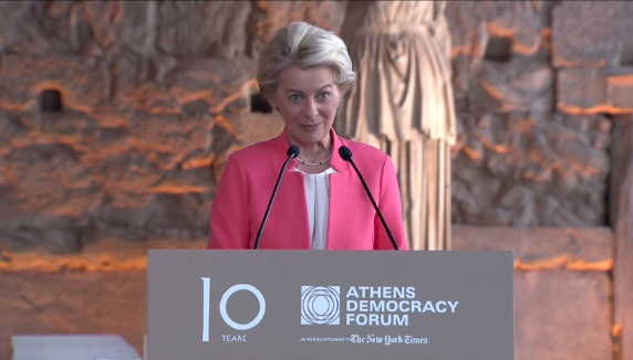 Είναι μεγάλη μου χαρά που γιορτάζω μαζί σας τη δέκατη επέτειο του Athens Democracy Forum. Αυτή η εβδομάδα σηματοδοτεί ακόμα μια επέτειο: πριν από 25 αιώνες, ένας από τους ισχυρότερους στόλους στην ιστορία εμφανίστηκε στη θάλασσα ακριβώς μπροστά στην Αθήνα. Μια ξένη αυτοκρατορία είχε εξαπολύσει επίθεση κατά των ελεύθερων πόλεων της Ελλάδας. Ωστόσο, στα στενά της Σαλαμίνας, η ελληνική συμμαχία σημείωσε μια απρόσμενη νίκη εναντίον ενός πολύ ισχυρότερου εχθρού. Ιστορικοί και ποιητές περιέγραψαν τον πόλεμο αυτό πολύ ξεκάθαρα: για πρώτη φορά στην ιστορία, η απολυταρχία εξαπέλυε επίθεση κατά της δημοκρατίας. Και η απολυταρχία απέτυχε, ενώ η δημοκρατία υπερίσχυσε. Με τα λόγια του Αισχύλου, οι Έλληνες «σπάσαν το ζυγό στη μέση» γιατί «δούλοι δεν λογιούνταν ανθρώπου». Σε αντίθεση με τους εχθρούς τους, οι Έλληνες δεν πολεμούσαν λόγω της απληστίας ενός ανθρώπου, αλλά για την ελευθερία τους.